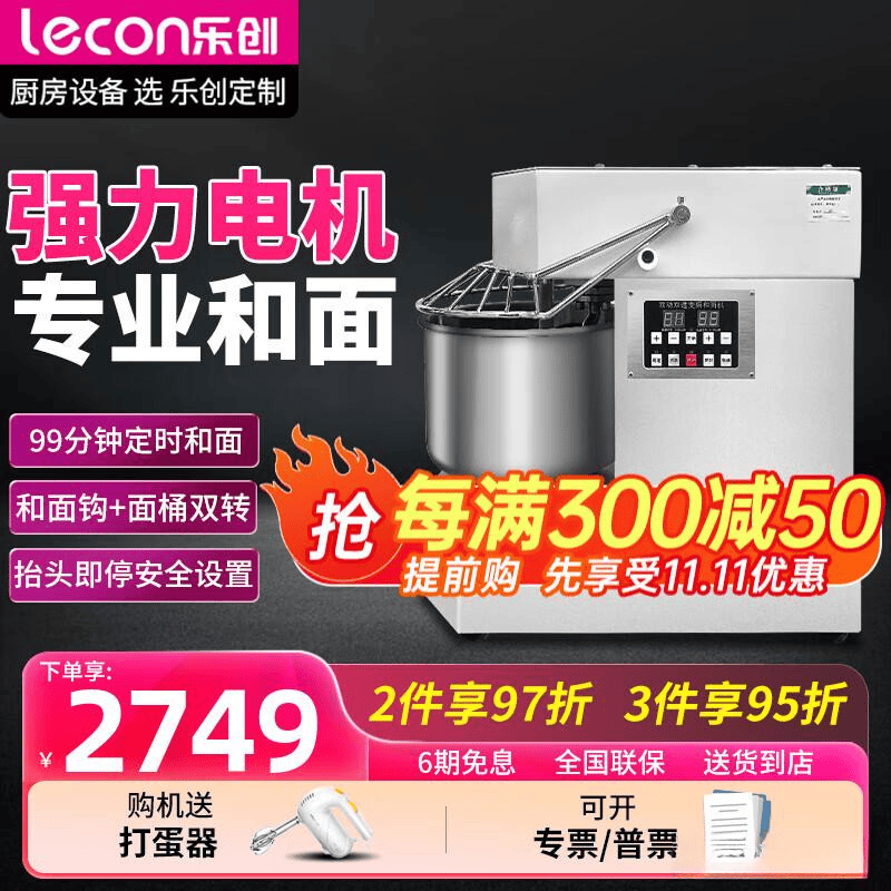 推荐理由:这款乐创20升和面机线KW的大功率,搅拌速度快,工作效率高。而且,它还能根据你的需求调节低速/高速两种模式,不管是做面食还是和面,都能轻松应对。还有,30分钟的智能定时功能,设置好时间,就能自动和面,省心又省力。